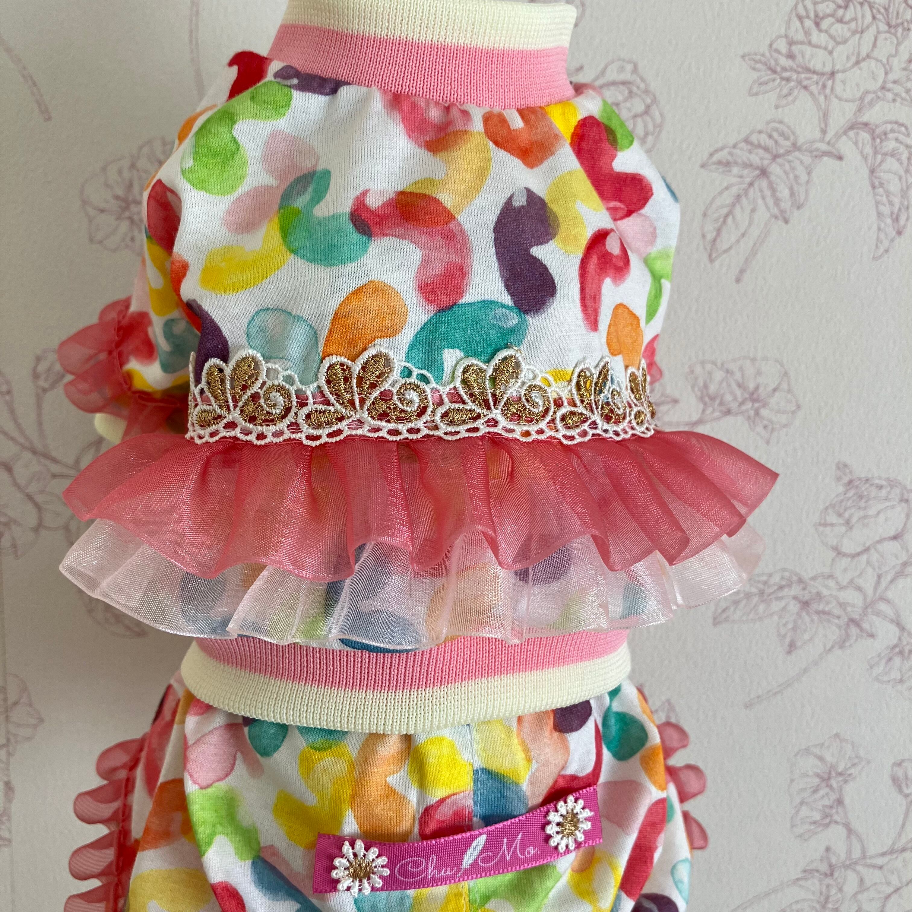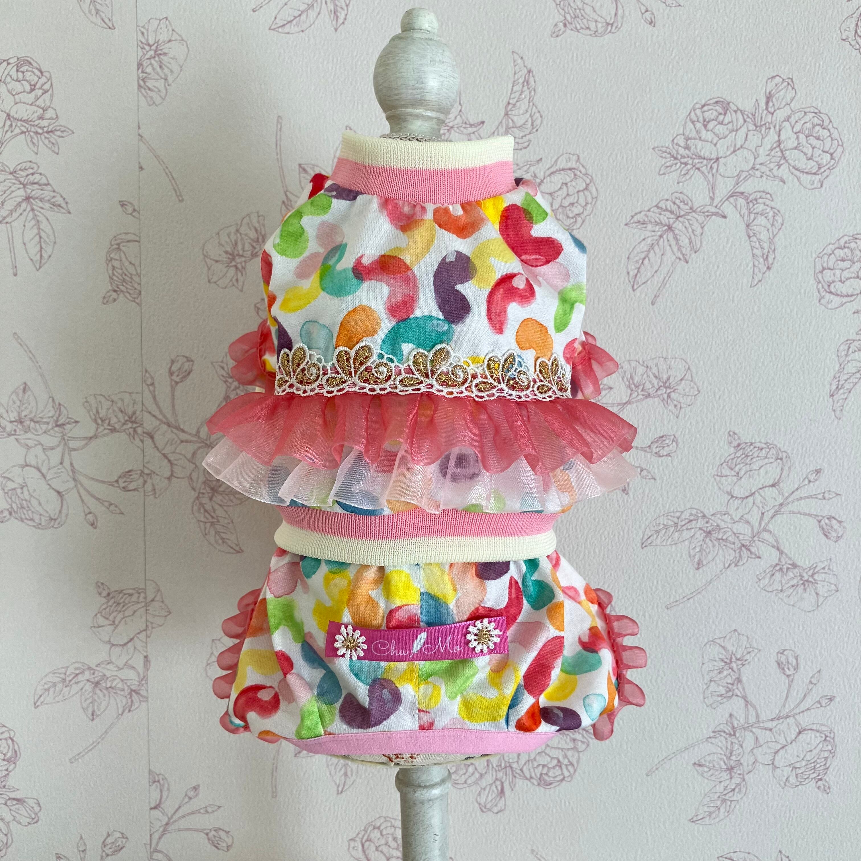 ジェリービーンズふりるろんぱ〜すPK⭐︎犬服/ドッグウェア/ロンパース