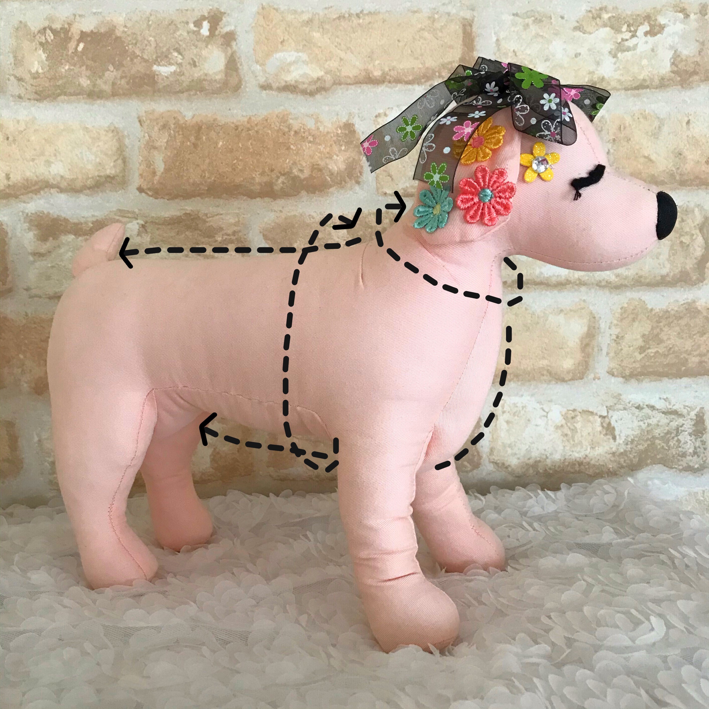 採寸は必ずワンちゃんを立たせた状態で行ってください。※デザインによりサイズ感が異なる場合がありますので、予めご了承ください。